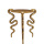 Supporting the disc top of the Serpent Brass Accent Table are curvy creatures that pull a balancing act as they clamp down on its thin surface. This is a whimsical aspect of this design. Made of cast aluminum in an antique brass finish, the gleaming gold occasional table will certainly be a conversation starter in any space, as it will command attention when the luminous surfaces glow when light touches them. Illustrating the artisanal aspects of cast aluminum, there are drifts of patina throughout the profile.