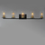 Cylinders in Clear Seeded glass on simple Satin Nickel frames or matte Black frames with Antiqued Brass socket covers. Pivoting arms on chandelier allow it to direct light up or down. Use filament lamps either tubular or Edison in shape for a Coastal or In