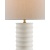 The Snowdrop Table Lamp is made of natural sandstone with finely carved ridges accentuating its cylindrical column. The minimalistic profile of the white stone lamp brings texture to a space with its horizontal lines. The Snowdrop is fitted with an off-white linen shade.