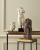 The Tanay Brass Side Table is not shy when it comes to infusing a space with an incredible mix of textures. Not only does the cast aluminum top have tell-tale pitting on the surfaces of its gleaming gold interior and exterior edge, the bottom of its tabletop is stamped in a snakeskin pattern in a graphite finish. This masterpiece of artistry sits atop a black iron base that is minimal to allow the artisanal top to be the scene-stealer.