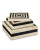 The Taurus Box Set has a number of artisanal aspects to its design and construction, one of which is how the handmade ivory and black decorative boxes have mitered corners that follow the line telescoping from their tops to their bottoms. Once the bone and composite materials have been fitted together in tidy lines, texture is achieved on the surface when artisans mark the white speckled bone with a brazing tool. This level of specificity and the fact that the boxes are composed like intricate puzzles bring complexity to these artisanal accessories.