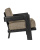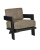 The Theo Lounge Chair, covered in Rig Otter fabric, has a solid Mindi wood frame in a caviar black finish. The upholstery fabric on this piece packs a punch with its textural weave and serves as a light contrast to the dark wood. The back leg on the roomy chair splays backwards to create an interesting profile. The deep tones in the wood draw out the darker tones in the nubby fabric.