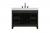 This bathroom vanity embodies a sleek, modern design with a strong, minimalist appeal. The deep mocha brown finish enhances the bold and sophisticated appearance, while the flat-panel doors and drawer fronts contribute to its clean, structured aesthetic. The wood's dark tone adds depth and richness, making it a striking focal point in any bathroom setting. Its structured design, featuring symmetrical drawers on either side and a centered door, adds balance and organization to the overall aesthetic. Matte black hardware, including slim and cylindrical pulls, contrasts elegantly against the dark wood, reinforcing its contemporary vibe while providing subtle visual interest. The thick engineered marble countertop in crisp white adds a sharp contrast to the dark base, creating a visually dynamic combination that is both functional and stylish. This vanity is perfect for those seeking a design that combines modern simplicity with a touch of bold refinement. This vanity is delivered fully assembled and equipped with foot levelers for effortless installation and stability. Combining practicality and bold design, this vanity is UPC certified and ready to transform your bathroom space. Complete the setup with an optional matching backsplash, sold separately.