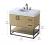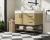 Upgrade your bathroom with this stylish transitional vanity, available in five stunning finishes, from crisp white to warm honey brown, designed to suit a variety of decor styles. The minimalist flat door panels and open wood shelf create a functional yet visually appealing storage solution, while the slender black metal legs elevate the look with modern sophistication. The 4-inch thick white engineered marble countertop, accented with natural veining, adds a luxurious touch, perfectly complemented by soft-closing doors with sleek black metal bar pulls. Thoughtful details like the concealed overflow, back panel cutout for plumbing, and 3 pre-drilled holes for an 8-inch faucet make installation easy and efficient. with a porcelain sink and farmhouse-inspired touches, this vanity brings both elegance and practicality to any bathroom setting.