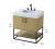 Upgrade your bathroom with this stylish transitional vanity, available in five stunning finishes, from crisp white to warm honey brown, designed to suit a variety of decor styles. The minimalist flat door panels and open wood shelf create a functional yet visually appealing storage solution, while the slender black metal legs elevate the look with modern sophistication. The 4-inch thick white engineered marble countertop, accented with natural veining, adds a luxurious touch, perfectly complemented by soft-closing doors with sleek black metal bar pulls. Thoughtful details like the concealed overflow, back panel cutout for plumbing, and 3 pre-drilled holes for an 8-inch faucet make installation easy and efficient. with a porcelain sink and farmhouse-inspired touches, this vanity brings both elegance and practicality to any bathroom setting.