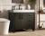 This bathroom vanity embodies a sleek, modern design with a strong, minimalist appeal. The deep mocha brown finish enhances the bold and sophisticated appearance, while the flat-panel doors and drawer fronts contribute to its clean, structured aesthetic. The wood's dark tone adds depth and richness, making it a striking focal point in any bathroom setting. The vanity features a functional layout, with two cabinet doors on one side and three stacked drawers on the other, creating a balanced and organized look. Matte black hardware, including slim and cylindrical pulls, contrasts elegantly against the dark wood, reinforcing its contemporary vibe while providing subtle visual interest. The thick engineered marble countertop in crisp white adds a sharp contrast to the dark base, creating a visually dynamic combination that is both functional and stylish. This vanity is perfect for those seeking a design that combines modern simplicity with a touch of bold refinement. This vanity is delivered fully assembled and equipped with foot levelers for effortless installation and stability. Combining practicality and bold design, this vanity is UPC certified and ready to transform your bathroom space. Complete the setup with an optional matching backsplash, sold separately.