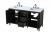 Bring both elegance and practicality to your bathroom with this transitional vanity, available in a selection of rich finishes that highlight the beauty of faux wood grain in shades of mocha, chestnut, and honey, along with classic white and modern grey. The flat door panels and sleek black metal pulls create a minimalist yet refined aesthetic, while the soft-closing drawers and tapered legs with levelers provide smooth, functional operation. Topped with a luxurious white engineered marble countertop and featuring a porcelain sink, this vanity combines timeless style with modern efficiency. Thoughtfully designed with U-shaped cutout for plumbing, it offers ample storage and easy installation, making it the perfect centerpiece for any bathroom.