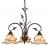 Bring a little of the outdoors inside with the Vine collection. Inspired by nature, this rustic collection features a dark oil shale finish. The amber flake glass shades are scalloped softening the overall feel. Elegantly curved arms are sprinkled with delicately crafted leaves completing the look. This full family of fixtures has something for every room in your home. This chandelier is ideal for kitchens, dining areas, and foyers.