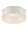 The Wexford White Flush Mount is made of metal in a snow white finish. The paleness of the surface works in concert with the soft glow produced by the opaque acrylic diffuser to create a luminous design. The matching finial that fastens the diffuser to the fixture and the scalloped shape of its profile are graceful elements.