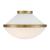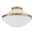 The Xander collection features a playful, mid-century-inspired design with clean lines and fun pops of color. It has white opal glass and gold accents, creating a two-toned finish that adds a touch of whimsy. This versatile fixture can be used in various settings, making it a stylish and functional addition to any room.