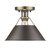 Bring industrial elegance into your home with the Yep by Golden Lighting Orwell 1-light Flush Mount. Featuring a metal shade and an Aged Brass frame, it creates a welcoming atmosphere. The metal shade, highlighted in a rubbed bronze finish, offers warmth and sophistication, gently diffusing light to enhance the space. Embrace timeless elegance with our Aged Brass finish, providing a warm glow that enriches any decor style. This fixture is perfect for low ceilings in hallways, closets, laundry areas, and bathrooms, and is rated for damp locations, suitable for covered spaces. Overall Dimensions: 10"W x 8"H x 10"D. Requires 1 E26 Medium base bulbs (not included). Max 100 wattage per bulb. Enhance your decor with this stylish flush mount that blends functionality with quality, creating an inviting ambiance.